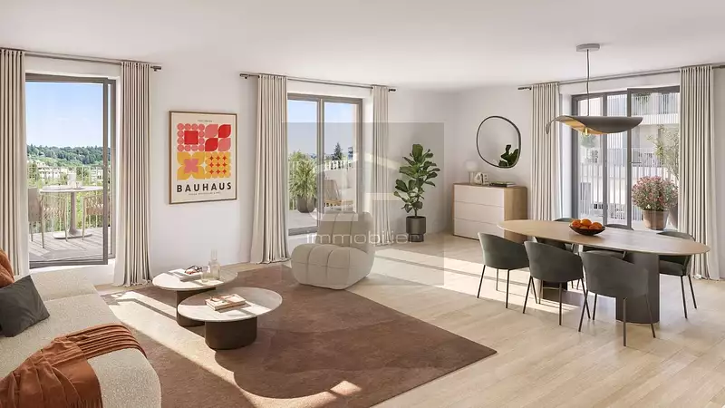 Appartement T4 neuf - Traversant avec 2 balcons - Annecy À vendre à Annecy, beau T4 neuf de 83 m² au 4? étage (avant-dernier) d'une résidence moderne. Traversant Est-Ouest, il offre un séjour lumineux avec cuisine ouverte, 3 chambres dont une suite parentale avec salle d'eau, une buanderie et un cellier. Profitez de 2 balcons terrasses (12,71 m² et 10,87 m²) pour savourer le soleil du matin au soir. Un parking privatif complète ce bien. Ligne de bus principale n°2 à proximité immédiate. Avantages du neuf : isolation renforcée, chauffage urbain individuel, finitions haut de gamme, personnalisation possible (TMA). Une opportunité rare à Annecy, proposée par CP IMMOBILIER, spécialiste du neuf.