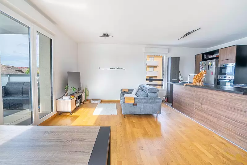 Les atouts : résidence récente, vue montagnes, double salle d'eau, chauffage moderne, cuisine équipée, Annecy.