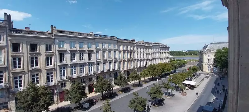 BORDEAUX Hyper Centre Appartement entièrement rénové de 82,90m² au 3ème étage d'un immeuble du début du 20ème siècle offre une vue sur la Garonne et le Grand Théâtre. Il comprend une entrée avec sas, un séjour lumineux de 43m², une cuisine ouverte et équipée, deux chambres, une salle de bain et un WC indépendant. Les prestations comprennent un parquet neuf, des cheminées d'époque et des fenêtres en bois double vitrage. L'immeuble a récemment refait sa toiture et son ravalement, son entrée séduit par ses pierres apparentes. Idéalement situé près du parking Chapeau Rouge et du tram B Grand Théâtre.