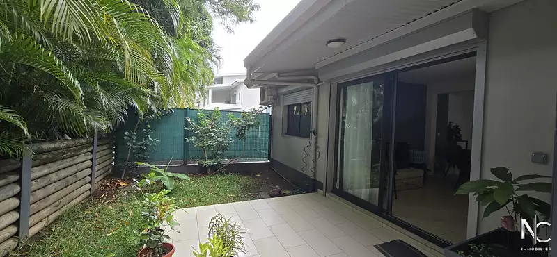 Il offre une entrée, un séjour / salon, une cuisine équipée ouverte, 3 chambres avec placard et climatisées, une salle d'eau avec wc et un wc indépendant. En extérieur, la terrasse couverte permet l'accès au jardin sans vis-à-vis. Un autre jardin se trouve sur l'avant.