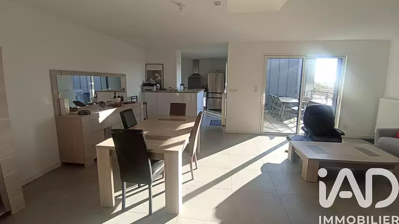 Il se compose d'une agréable pièce de vie avec sa belle cuisine aménagée et équipée donnant sur une agréable terrasse, 2 belles chambres avec placard, salle d'eau, cellier, pallier et vaste garage.