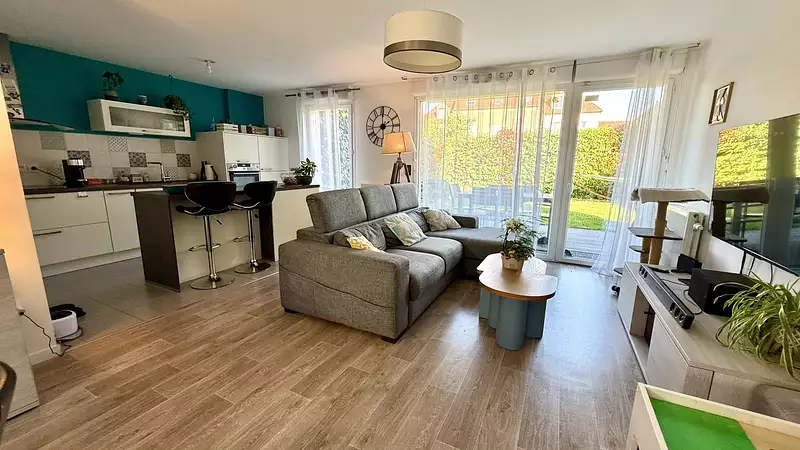 Appartement triple exposition, chacune des pièces avec portes fenêtres orientées vers son magnifique jardin sans vis-à-vis. Esprit maison de plain-pied, spacieux et lumineux de 83 m² située dans une résidence sécurisée et verdoyante de 2015 à quelques minutes de l'entrée des axes autoroutiers et à 15 minutes à pieds des Gares Mantes-La-Jolie et Mante station. Classe énergétique C ! Il comprend une magnifique entrée de 12 m² avec nombreux rangements, une pièce à vivre de 37m² avec cuisine américaine équipée d'électroménagers entièrement encastrés et comprenant un îlot central. Espace très lumineux et accès de chaque coté au jardin clos de 290 m², à l'abri des regards et agrémenté d'une terrasse, d'un abri jardin et divers éléments. Cellier et wc indépendant norme PRM. Espace nuit avec dégagement desservant 2 chambres avec accès jardin, une salle de bains avec baignoire. ( appartement conçu à l'origine pour 3 chambres). Une place de parking en sous-sol. Cet appartement vous ravira par ses volumes et prestations. Appartement à l'origine composé de 3 chambres. Les charges de copropriété comprennent votre consommation de chauffage et d'eau ! Résidence avec entretien des espaces verts et halls communs impeccables. A découvrir sans plus tarder !