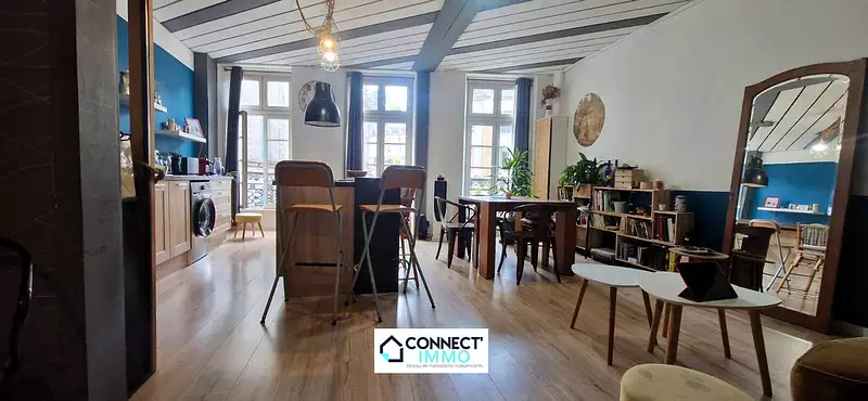 Connect'IMMO au c?ur du centre-ville de MORLAIX. Au sein d'une copropriété ancienne, cet appartement T3/4 de 83 m² environ vous séduira par sa situation très centrale, la luminosité de sa pièce principale grâce à son EXPOSITION S/O et sa distribution ATYPIQUE. La large entrée avec PLACARDS et WC séparé conduit d'un coté à l'espace nuit et de l'autre la partie jour. La pièce de vie toute OUVERTE compte une cuisine Aménagée et Équipée avec îlot central et point repas, un espace salle à manger et un coin séjour. 3 grandes fenêtres apportent une agréable lumière. Le couloir nuit avec sa banquette pour un ESPACE COSY lecture ou bureau propose un 2nd WC, un SDE et 3 possibles chambres dont 1 en enfilade. La copropriété est gérée par un syndic bénévole. Les charges de copropriété sont de 184?/an. Travaux de toiture votés, à charge vendeur et prévus pour 01.2026. - SUPERI_1765213864