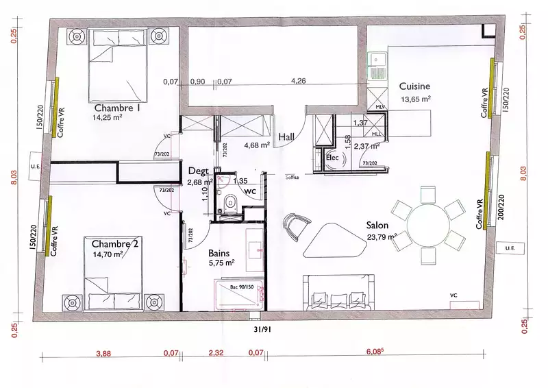 | 83 m² (carrez : 83) - 3 pièces - 2 chambres | Année de rénovation : 2023 |