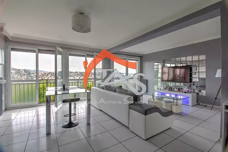 Appartement t3 avec loggia et cave villars, avec vue dégagée, appartement traversant type f3 de 83,13m² avec loggia et cave. cuisine (équipée) ouverte sur salon-séjour (40.28m²) donnant sur la loggia, deux chambres (12.28m² et 12.78m²), salle d'eau (4.63m²) et wc séparé (1.50m²). volets roulants motorisés ; chauffage collectif gaz avec diffusion au sol et par radiateurs. stationnements gratuits à proximité immédiate. proche commerces et commodités ; à 6min en voiture d'une gare sncf et à 8min des axes autoroutiers en direction de saint-etienne et de lyon. bien soumis au statut de la copropriété : nb de lots : 56 ; charges : 920eur/trimestre (incluant les dépenses générales, chauffage, eau chaude) ; pas de procédure en cours. classe energie : e. prix : 99 000 eur honoraires d'agence inclus à la charge du vendeur. annonce rédigée sous la responsabilité éditoriale de laurine charrat agent commercial - rsac 919 284 737 - ville du greffe : saint-etienne. contact : 06 50 16 29 10. ref : 7409. -
