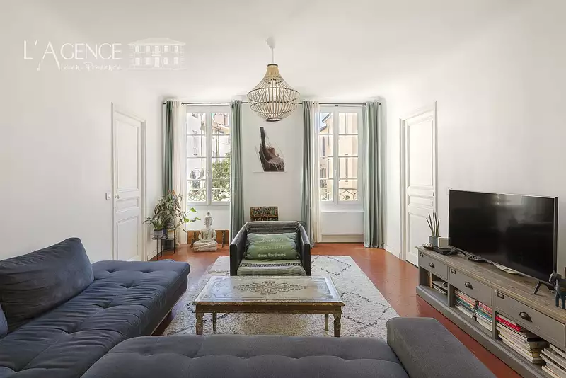 Situé en plein coeur d'Aix-en-Provence, découvrez ce magnifique appartement de type 3, alliant charme et authenticité, d'une superficie de 84 m² Carrez.