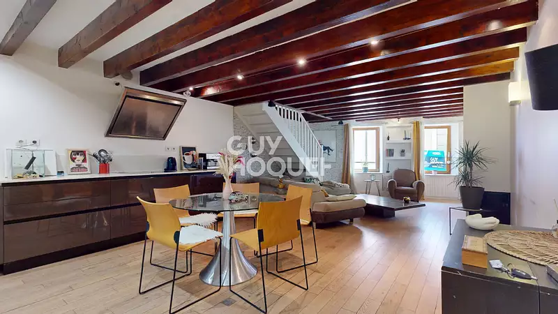 UNIQUEMENT CHEZ GUY HOQUET GRAND ANNECY ! Appartement de charme en triplex situé au troisième étage sans ascenseur d'une copropriété en plein centre-ville d'Annecy, rue Filaterie. Idéal pour les amoureux de la vie urbaine et de la vieille ville : commerces à proximité immédiate et accès au lac à seulement quelques mètres. Cet appartement de 84.38m² rénové avec soin se compose : Au premier niveau : d'un grand séjour avec cuisine équipée d'environ 40 m² et une salle d'eau. Au deuxième niveau : d'une chambre et une salle de bains avec dressing. Au dernier niveau : d'une jolie chambre sous combles. La copropriété est bien entretenue avec façade, toiture et parties communes rénovées. Un bien rare, à visiter rapidement. DPE : D Copropriété de 39 lots - dont 17 lots habitation. (Pas de procédure en cours). Charges annuelles : 1200 euros.