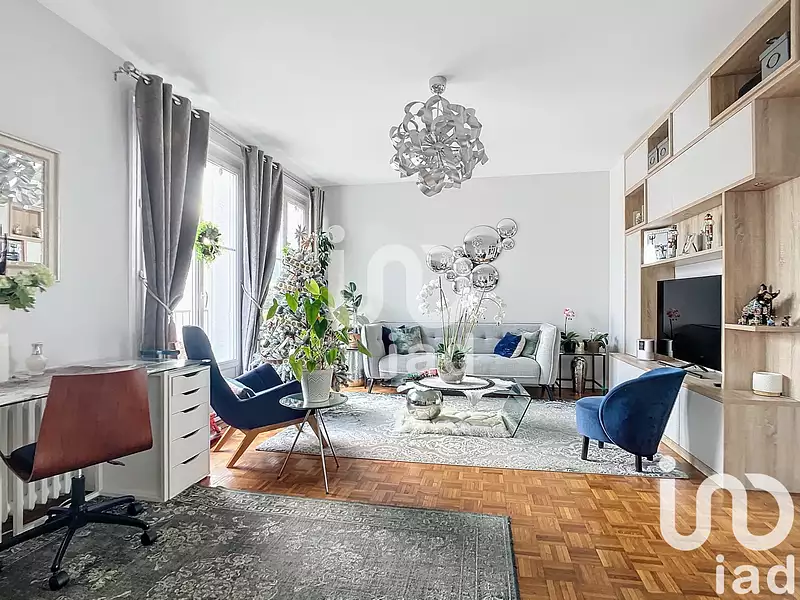 L'appartement se compose d'un séjour avec rangements réalisés sur mesure, d'une salle à manger ou chambre, l'ensemble exposé plein sud et donnant sur un petit balcon et d'une belle cuisine entièrement équipée. Côté nuit, un couloir avec grand placard vous mène vers deux chambres de 11m2 et 14m2, une belle salle de bain et un toilette indépendant.