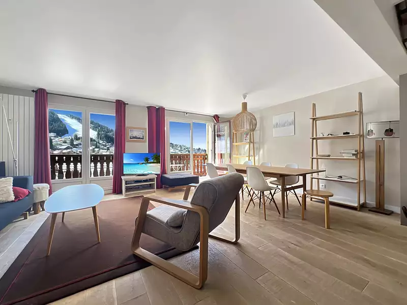 Situé en plein cœur du village, ce magnifique appartement en duplex offre confort, élégance et une vue imprenable sur la piste des Servages. Entièrement rénové avec goût, il allie charme alpin et prestations modernes.