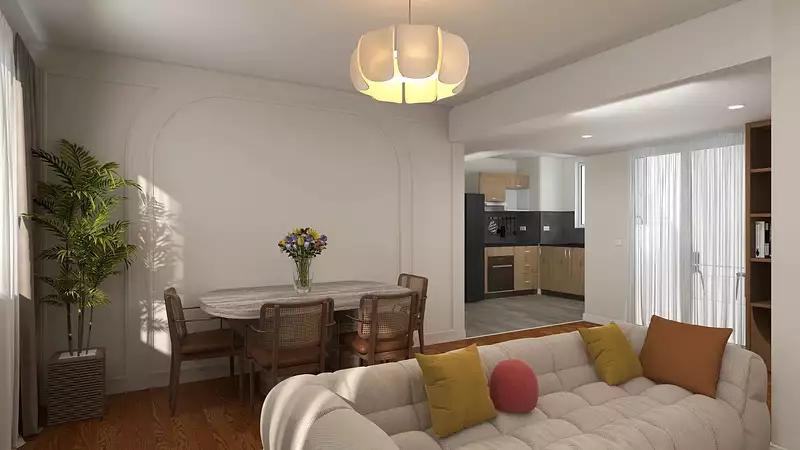 Le bien propose une entrée ouvrant sur le séjour avec un accès au balcon et une cuisine entièrement équipée.