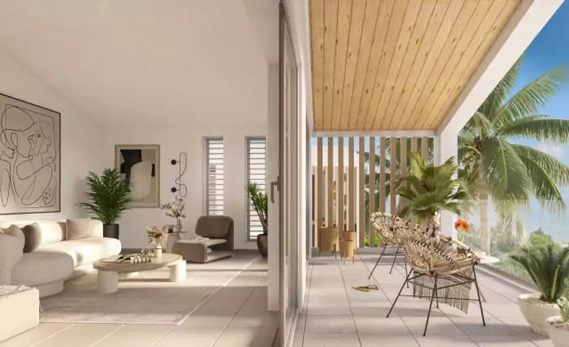 L'appartement est traversant, pour une excellente ventilation naturelle, certifié NF Habitat, garantissant un confort thermique optimal. Il se situe dans une résidence composée de 3 bâtiments, épousant la pente naturelle de la colline. Avec ses façades blanches, des touches de bois et des toitures légères s'intégrant parfaitement dans le paysage.