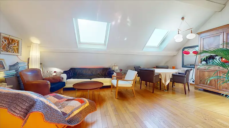 Situé au 2ème étage d'une petite copropriété calme, ce bien de 85 m² loi carrez offre une surface sous mansardes de 26 m² supplémentaires pour un total au sol de plus de 110 m².