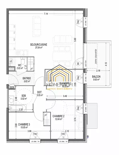 Imaginez-vous dans ce havre de paix, où chaque pièce a été conçue pour votre bien-être. Les trois chambres spacieuses vous offrent un havre de tranquillité, tandis que le salon et la cuisine ouverte vous invitent à des moments de convivialité. Le balcon de 9 m² est l'endroit idéal pour profiter des beaux jours, que ce soit pour un petit-déjeuner ensoleillé ou un apéritif en soirée.