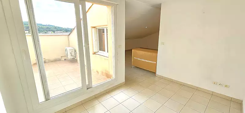 Beau T2 - T3 récent (2009) au 3e ét dernier étage mansardé de 85 m2 au sol. Sélour-salon-cuisine, chambre tout confort avec clim et vélux électrique, SDE, toilettes, une pièce mansardée, terrasse tropézienne, 2 places de parking en sous-sol. Libre immédiatement. false
