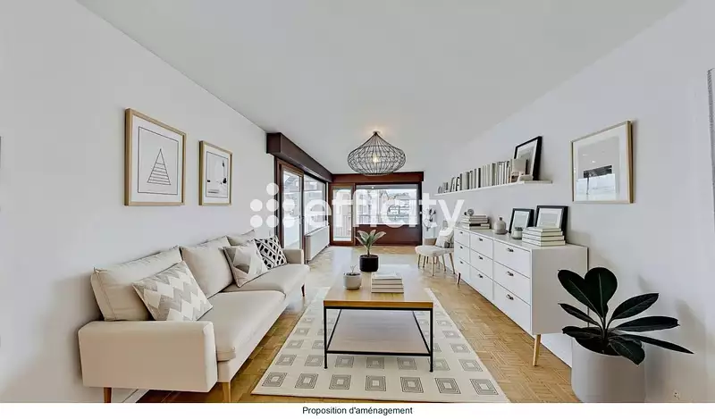 L'espace se compose aujourd'hui de 3 chambres, d'une salle de bain, d'une cuisine ouverte sur un vaste séjour, d'un cellier, ainsi que de deux balcons permettant de profiter de l'extérieur à toute heure.