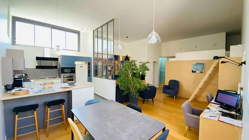 Centre ville historique, à proximité immédiate du Port de LA ROCHELLE, votre agence immobilière ORPI vous propose cet appartement à l'esprit Loft de 85 m² Carrez et 14 m² de surfaces annexes (coin couchage en mezzanine et rangement) et composé comme suit :