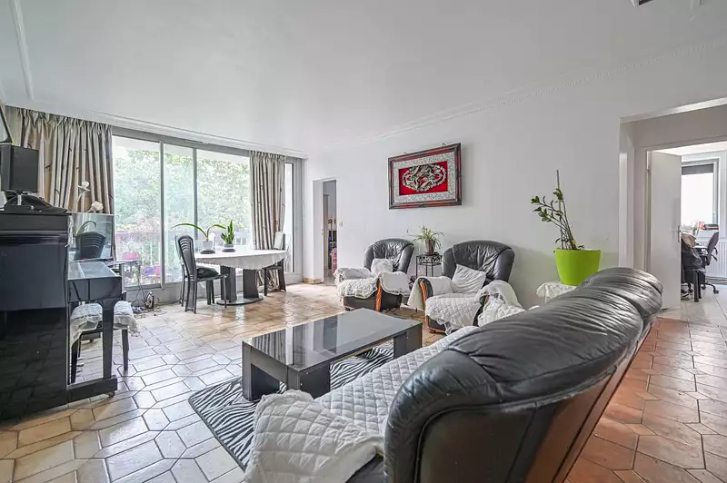Séjour lumineux de 30 m² exposé sud-ouest, donnant sur un balcon de 4,59 m²