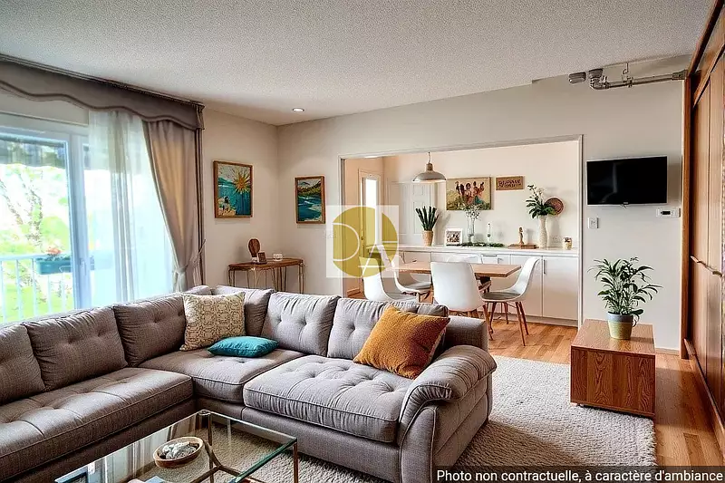 Il est composé d'un hall d'entrée, double séjour avec terrasse équipée d'un strore, cuisine, dégagement avec placard, 2 chambres, salle de bains, wc.
