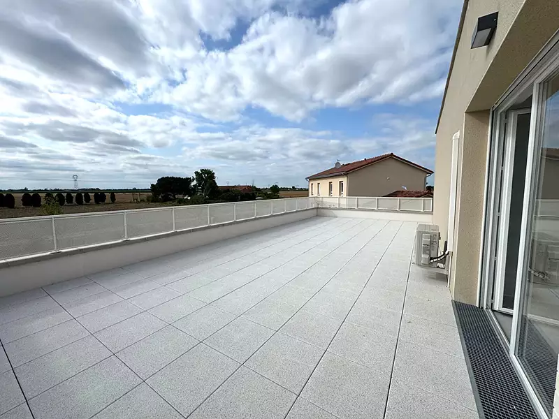PETITE RESIDENCE INTIMISTE !!! GRANDE TERRASSE ET BALCON DE 63m² !!! Appartement 4 pièces en étage de 85m² avec 55m² de terrasse + 8m² de balcon sans vis-à-vis bien exposés, le tout dans une petite résidence sécurisée située proche du centre de PINS-JUSTARET et de ses commerces. -Espace séjour lumineux ouvert sur cuisine le tout donnant accès à cette grande terrasse sans vis-à-vis avec vue sur espace vert. -3 chambres avec placards dont deux avec accès sur un balcon de 8m². -Salle de bain avec double vasque et sèche serviettes. -WC séparé. -2 places de parking avec accès sécurisé. Maxime FONTENELLE LES CLEFS TOULOUSAINES
