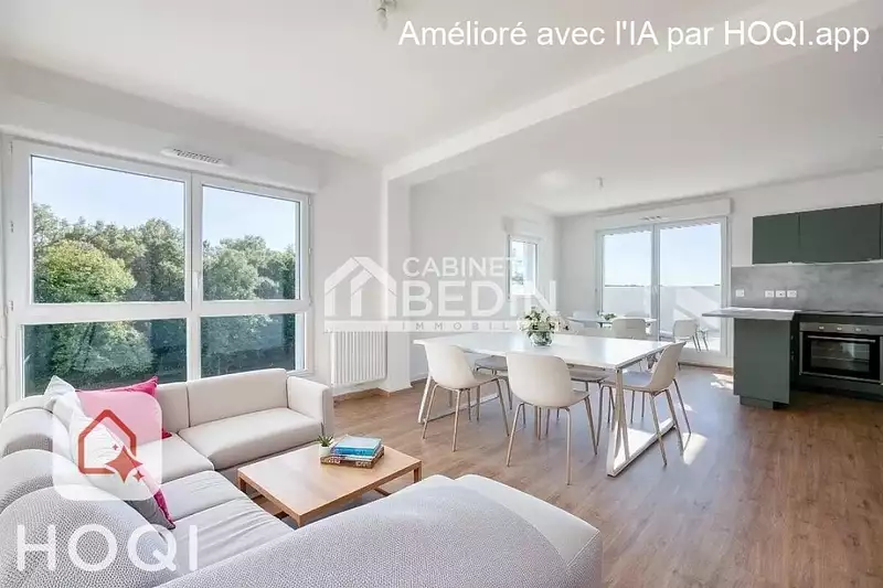 Exclusivité CABINET BEDIN - Duplex à Villenave d'Ornon avec vue panoramique. Découvrez ce duplex au dernier étage d'une résidence récente. Il offre une belle pièce de vie avec cuisine ouverte, une vaste terrasse ensoleillée, deux chambres, deux salles d'eau et deux WC. Initialement prévu pour trois chambres, le plan peut être facilement modifié. Profitez d'une vue à 360° sur le parc Trigant. Deux places de parking avec accès direct par ascenseur.