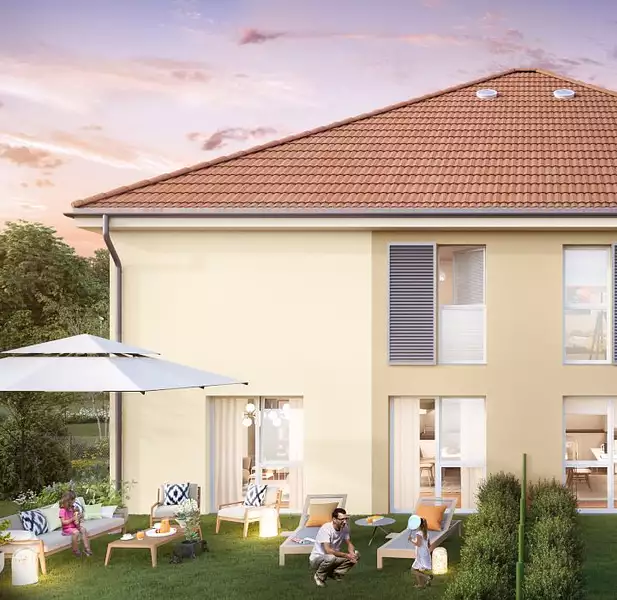 Arenthon(74800) Villa Duplex T4 de 86m², au rez de chaussée comprenant hall d'entrée,cuisine séjour,salle d'eau ,wc, un accès sur un petit jardin.
