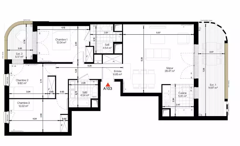 | 86,09 m² - 4 pièces - 3 chambres | Étage 1/7 avec ascenseur |