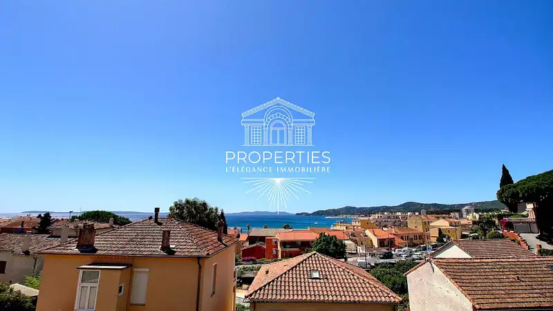 PROPERTIES Le Lavandou vous présente à la vente ce magnifique appartement T4 d'une superficie de 86m² situé au dernier étage (1.5 étage) d'une petite résidence, en position dominante à deux pas du centre-ville et des plages du LAVANDOU. Ce bien avec son accès indépendant, est traversant, exposé plein Sud, et dispose de prestations haut de gamme, et de très beaux volumes. Il se compose d'une belle et grande pièce à vivre avec sa cuisine ouverte équipée et aménagée ouvrant sur une vaste terrasse avec une très belle vue mer, de deux chambres, de deux salles d'eau, de deux WC, ainsi que de très nombreux rangements afin d'optimiser l'espace. Une remise indépendante en rez-de-chaussée, transformée en T2 avec terrasse pouvant également faire office de stationnement complète l'offre. Une deuxième place de parking privative aérienne est disponible en supplément. Rare à la vente ! (3.97 % honoraires TTC à la charge de l'acquéreur.) Copropriété de 4 lots - dont 4 lots habitation.(Pas de procédure en cours).