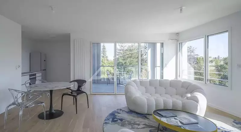 Dès le hall d'entrée, ressentez une quiétude absolue grâce à une décoration soignée, sublimée par la lumière offerte par de grandes surfaces vitrées.