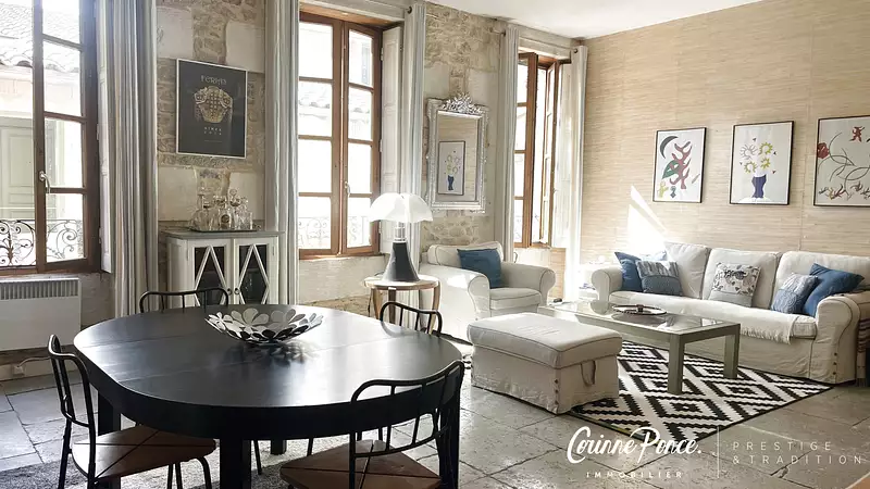 NIMES CENTRE, entre sainte Baudille et les Halles, Corinne Ponce Immobilier vous propose ce bel appartement de charme de 86 m2 avec garage , idéalement situé dans une petite copropriété d'un immeuble bourgeois.Très agréable entrée et belle distibution qui nous conduit jusqu'à la jolie piéce de vie de 30m2 à l authenticité préservée (murs en pierres apparentes, bars au sol, cheminée en marbre, hauteurs sous plafonds etc....La cuisine est indépendante et entièrement équipée, les deux chambres sont lumineuses et spacieuses et la salle de bain comprend baignoire et douche.Dans cette petite copropriété on se partage une adorable cour agrémentée de plantes. Un havre de paix en hyper centre! Un grand garage et une dépendance avec eau et électricité completent ce bien rare!!
