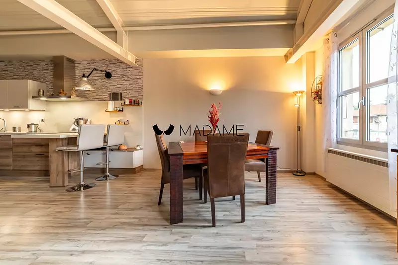 Bel appartement lumineux et sans vis-à-vis de 91m² au sol, situé en centre-ville de Rives, à proximité de toutes les commodités.