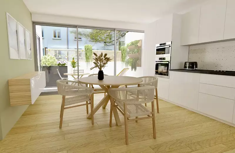 Appartement neuf de type T3 de 86m2 avec terrasse de 10m2 sans vis-à-vis et en plein centre-ville. Cet appartement traversant, desservi par ascenseur, se compose d’un séjour de 50m2 environ avec cuisine ouverte donnant sur terrasse ainsi que de deux chambres, l’une avec sa salle de bains, l’autre sa salle d’eau. Chaque chambre possède un dressing.