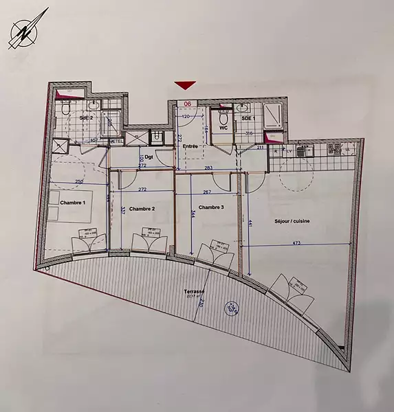 Entrée, séjour, cuisine ouverte, 3 belles chambres, 2 salles d'eau, 2 WC, 2 places de parking en sous sol complètent ce bien !