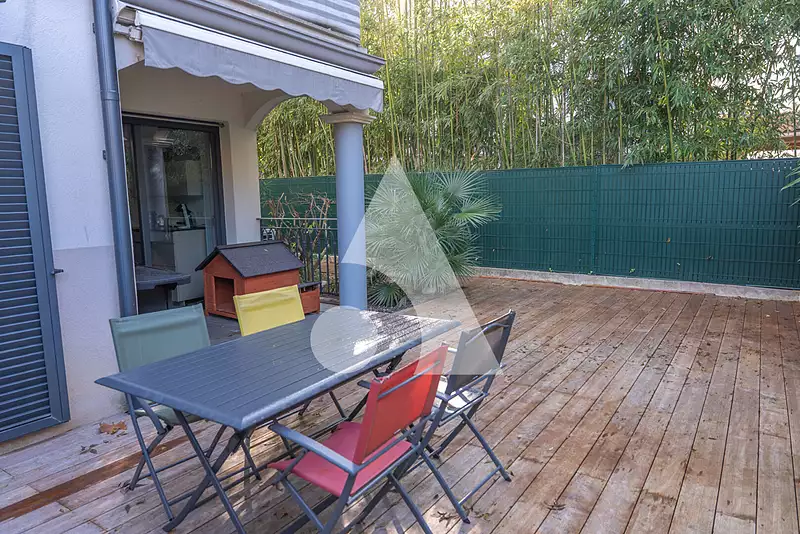L'agence Sixième Avenue Brignoles, l'immobilier par M6, vous présente, sur la commune de Brignoles, ce magnifique appartement en rez-de-jardin dans un quartier très recherché. Situé dans un quartier des plus calmes, cet appartement se compose d'une grande entrée, de 3 grandes chambres dont 2 climatisées et une avec balcon privatif, un grand WC, une grande salle d'eau . Vous profiterez de tout le confort d'un grand séjour et salle à manger, climatisé, de plus de 35m2 avec cuisine américaine ouverte. Le tout ouvrant sur une magnifique terrasse paysagée de 122m2, baignée de soleil et en partie couverte. Situé dans une petite copropriété récente (2016), vous bénéficierez également d'une place de parking à jouissance privative, de places de parking communes à l'immeuble ainsi qu'un grand box en sous-sol. Cet appartement dispose de toutes les dernières normes, vous n'avez plus qu'à y venir poser vos valises ! Copropriété de 13 lots - dont 13 lots habitation. (Pas de procédure en cours). Charges annuelles : 132 euros. MARTIN SPINAZZOLA (EI) Agent Commercial - Numéro RSAC : 982131526 - Draguignan.