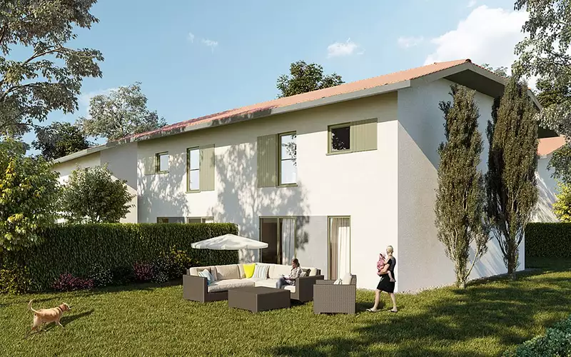 Extérieurs clos et engazonnés (maison).