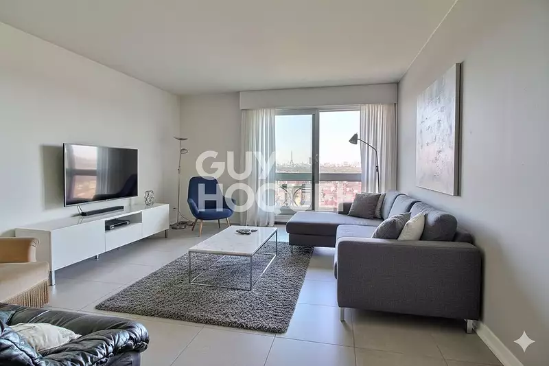 Au sein d'une résidence de standing avec piscine et gardien, découvrez ce spacieux appartement de 87 m² bénéficiant d'une triple exposition ! Il se compose d'un séjour ouvrant sur une terrasse exposée plein sud, offrant une vue imprenable sur la Tour Eiffel, d'une cuisine indépendante (avec possibilité d'ouverture sur le séjour). L'espace nuit, agrémenté d'un balcon donnant sur les jardins, comprend une suite parentale avec salle de bains, toilettes et grand placard, deux belles chambres, une salle d'eau et des toilettes séparées. De nombreux rangements, dont un débarras, complètent ce bien. Une cave et un box sont inclus dans l'offre. Possibilité d'acquérir un second box en supplément. Rafraichissement à prévoir Ne manquez pas cette opportunité rare sur le marché immobilier ! « photographie non contractuelle » Copropriété de 718 lots - dont 230 lots habitation. (Pas de procédure en cours). Charges annuelles : 4800 euros.