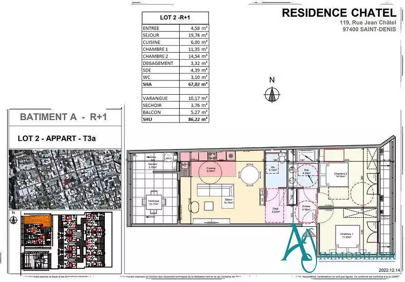 | 87 m² - 3 pièces - 2 chambres | Étage 1/3 avec ascenseur |