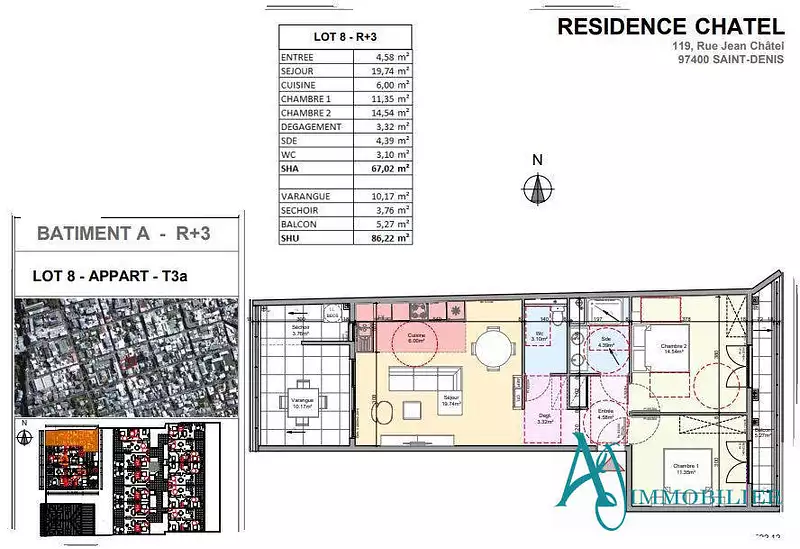 | 87 m² - 3 pièces - 2 chambres | Dernier étage (3ème) avec ascenseur |