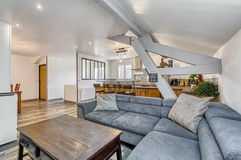 A Vallières-Sur-Fier, dans une maison et à proximité immédiate de toutes commodités, Coup de coeur pour ce beau et spacieux Type 3 totalisant 88 m2 environ (87,86 m2 Loi Carrez). Rénové avec goût en 2022, l'appartement dispose d'un hall d'entrée donnant accès à un escalier qui mène à une grande pièce de vie d'environ 47 m2. Elle se compose d'une cuisine de qualité et entièrement équipée ouvrant sur un chaleureux salon-séjour et son poêle à granulés. Deux chambres avec placard de rangement dont une avec un dressing, les deux ouvrant sur un balcon filant, une salle de bain avec baignoire et cabine de douche, un WC indépendant. Ce bien bénéficie d'un petit espace vert de 30 m2 juste en contre-bas des escaliers menant à l'appartement, de deux places de parking extérieur, d'un cave de 10 m2 au sous-sol. A visiter absolument !!