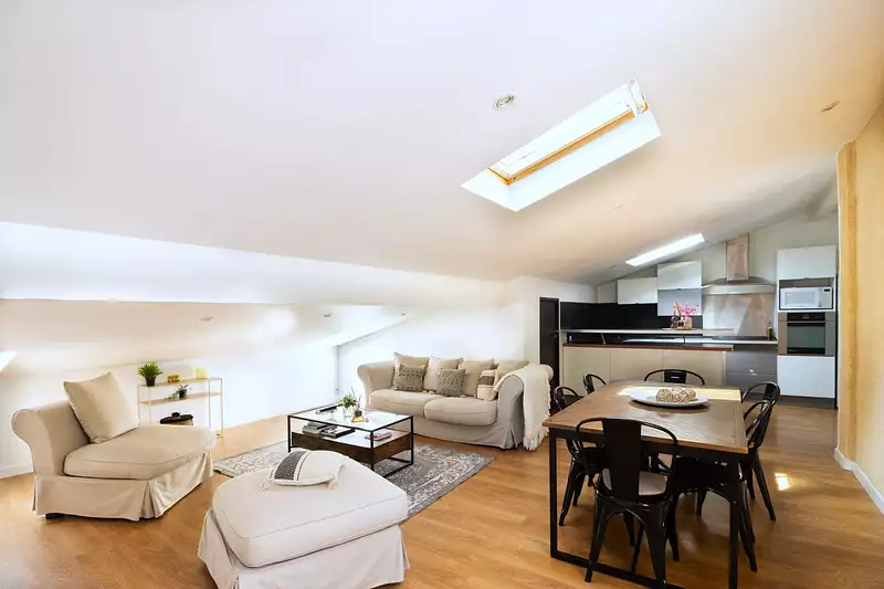 Dans l'un des quartiers les plus prisés et prestigieux de Bordeaux, le Triangle d'Or, découvrez ce sublime appartement niché au dernier étage d'un immeuble de grand standing.