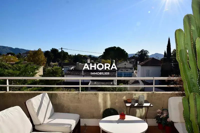 Cet appartement alliant charme et modernité offre un cadre de vie idéal pour une famille ou un couple. Il se distingue par ses 110 m² de surface au sol, répartis en 4 pièces lumineuses dont la mezzanine. Vous y trouverez 2 chambres confortables, une salle de bains et une salle d'eau, ainsi qu'un WC à chaque étage. La cuisine est aménagée et équipée avec possibilité d'être ouverte sur le salon. L'appartement dispose également d'une terrasse d'environ 15 m² offrant une vue dégagée et une exposition Sud, parfaite pour profiter du soleil méditerranéen. Les ouvertures en aluminium et les doubles vitrages garantissent une isolation optimale et une luminosité naturelle.
