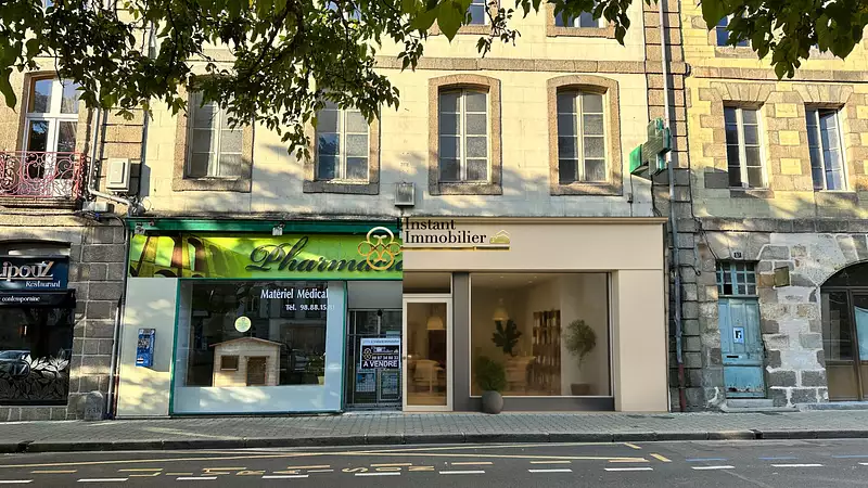 Découvrez cet appartement de caractère situé en plein coeur du centre-ville de Morlaix, offrant à la fois un vaste appartement et un local commercial, en RDC d'une superficie d'environ 70m2. Le tout agrémenté de dépendances et d'espaces extérieurs. L'appartement se distingue par sa belle hauteur sous plafond de 3,30 m, ses moulures élégantes aux murs et plafonds ainsi que son parquet en pointe de Hongrie, qui soulignent le charme et l'authenticité de l'ancien. La pièce de vie d'environ 40 m², lumineuse et traversante, met en valeur ces beaux volumes. Au rez-de-chaussée, le local commercial dispose d'une belle pièce principale d'environ 30 m² ainsi que de deux réserves, permettant d'envisager de multiples activités professionnelles ou une transformation en bureaux modernes. A l'extérieur, plusieurs caves complètent ce bien, ainsi qu'une cour donnant accès à des espaces supplémentaires à l'étage, apportant encore plus de potentiel d'aménagement et de stockage. Des travaux sont à prévoir, mais ils permettront de redonner toute sa valeur à ce bien rare, plein de caractère et offrant de nombreuses possibilités d'aménagement. Cet immeuble représente une belle opportunité pour des acquéreurs en quête d'un projet alliant charme de l'ancien, surface généreuse et emplacement privilégié au coeur de Morlaix. Une adresse idéale pour un commerçant souhaitant s'implanter ou pour un investisseur à la recherche d'un bien à fort potentiel. (6.00 % honoraires TTC à la charge de l'acquéreur.)