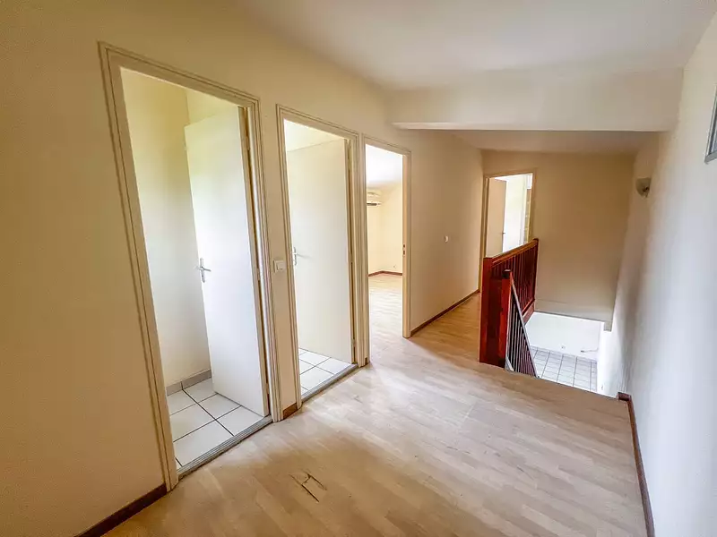 Le bien comprend : un spacieux séjour d'environ 41m² avec poutres apparentes s'ouvrant sur une terrasse d'environ 14m², idéale pour profiter de moments détente en plein air. Un jardinet extérieur ajoute une touche de verdure à ce charmant appartement. Le rez-de-chaussée comprend également une cuisine, un WC indépendant et un placard. A l'étage, un dégagement conduit à une première chambre de 10m², une seconde chambre lumineuse de 16m² env. avec placard, une salle d'eau avec bac à douche et vasque ainsi qu'un WC indépendant.