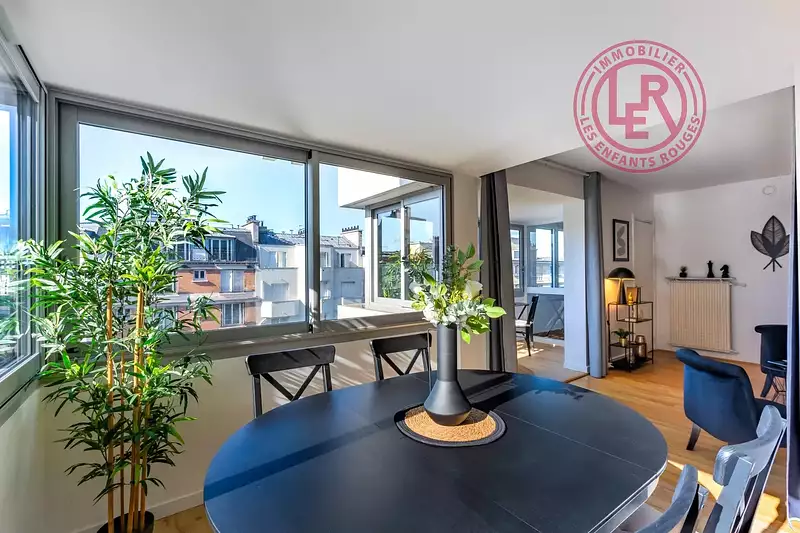 Exclusivité - L’Agence des Enfants Rouges a le plaisir de vous proposer un appartement confortable et lumineux de 88m2 Carrez et 98m2 au sol, situé au 7eme étage avec ascenseur d’un immeuble récent de standing (avec gardien et vidéo surveillance).