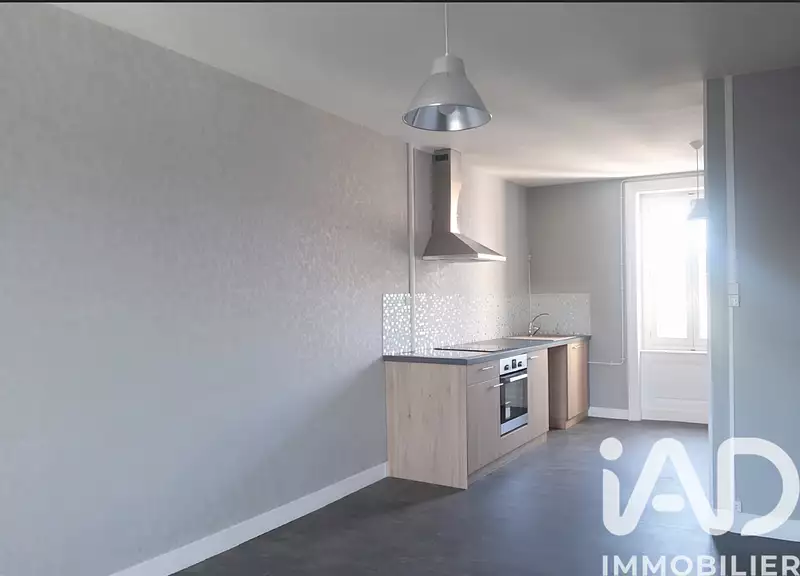 Chauffage électrique individuel neuf, fenêtres double vitrage, cuisine meublée avec four, hotte et plaque de cuisson.
