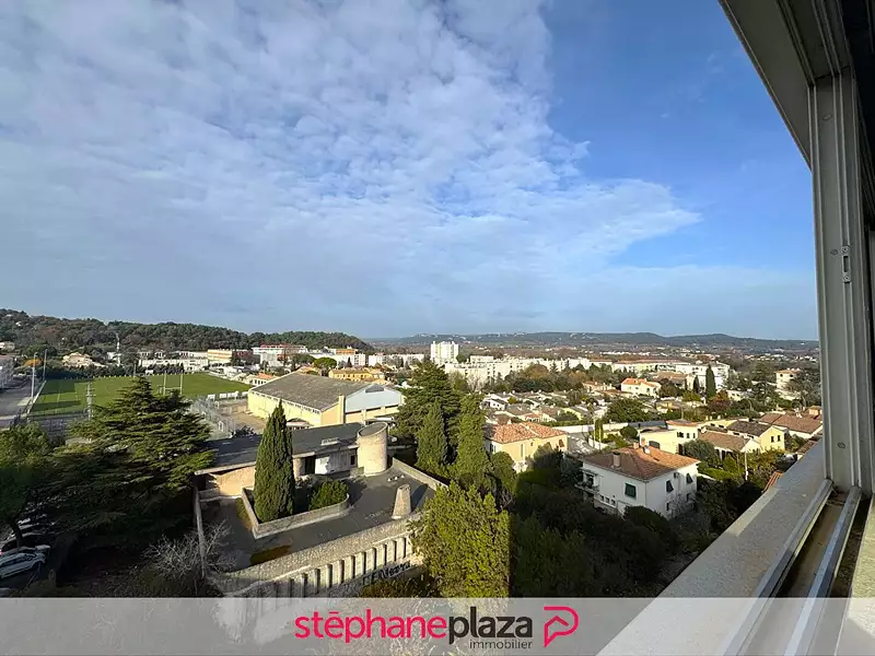 Stéphane Plaza Immobilier, agence immobilière à Bagnols sur Cèze, vous propose ce bel appartement de 89 m² situé au 5ème étage d'une résidence proche du Centre Hospitalier et du Lycée. Bien exposé et au calme, l'appartement est composé d'une pièce de vie lumineuse de 30 m², d'une cuisine séparée et équipée, avec petit balcon, d'une salle de bain, d'une salle d'eau avec WC, de 2 chambres et d'un coin bureau. De nombreux rangements dans l'appartement. Superbe terrasse de 30 m² avec vue panoramique! Le bien est équipé de volets électriques, d'une climatisation dans la pièce de vie et de radiateurs électriques dans le reste de l'appartement. TERASSE DOMINANTE La résidence, calme et sécurisée, dispose d'un ascenseur et, à titre privatif, d'une place en sous-sol ainsi qu'une cave sont dédiées à l'appartement. Un lot principal situé dans une copropriété formant 64 lots au total ne faisant l'objet d'aucune procédure en cours et d'un montant de charges d'environ 205 euros par mois (soit 2460 euros annuel) déclaré par le vendeur. Bon DPE B / 102 et classe A / 3 Calme assuré pour prestations de qualité. A voir! Jean-Rémi WEISS : O6.25.35.83.38 / O4.66.89.09.07 Copropriété de 64 lots - dont 48 lots habitation. (Pas de procédure en cours). Charges annuelles : 205 euros. Jean-Rémi Weiss (EI) Agent Commercial - Numéro RSAC : 898 257 092 - Nimes.