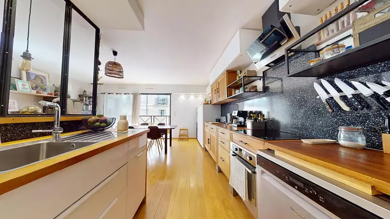Prestations de qualité : climatisation, parquet, double vitrage, verrière atelier, rangements intégrés.