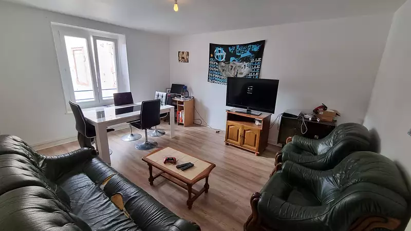 SPECIAL INVESTISSEUR, dans copropriété centre ville, appartement type T3 d'une surface de 89,07 m² loi carrez situé au 2ème étage actuellement loué 420 euros mensuel hors charges depuis le 13 juin 2021 soit un rapport locatif annuel 5040 euros/ an, comprenant entrée avec dégagement, cuisine équipée, séjour, 2 chambres, salle d'eau rénovée en 2013, wc. 1 grenier. Double vitrage installée en 2017. Copropriété sans difficulté financière avec 68 lots au total dont 28 lots à usage d'habitation, charge de copropriété 655 euros dont 388 euros récupérable sur locataire ( année 2022 ) Taxe foncière 2023 : 931 euros avec les ordures ménagères dont le montant est de 140 euros récupérable sur locataire. Copropriété de 68 lots - dont 28 lots habitation. (Pas de procédure en cours). Charges annuelles : 655 euros.