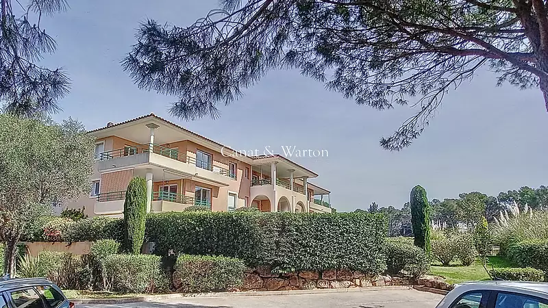 Appartement de 4 Pièces dans un petit immeuble de Standing situé quartier résidentiel 3 chambres dont une suite cuisine ouverte grand living lumineux 2 1 salle de douche 1 salle de bains 2 WC grande terrasse avec vue imprenable sur golf baies panoramiques climatisation inverter volets roulants électriques centralises garage parking l'ensemble plein sud sans vis a vis . tous commerces à pieds Copropriété de 9 lots (Pas de procédure en cours). Charges annuelles : 4500 euros.