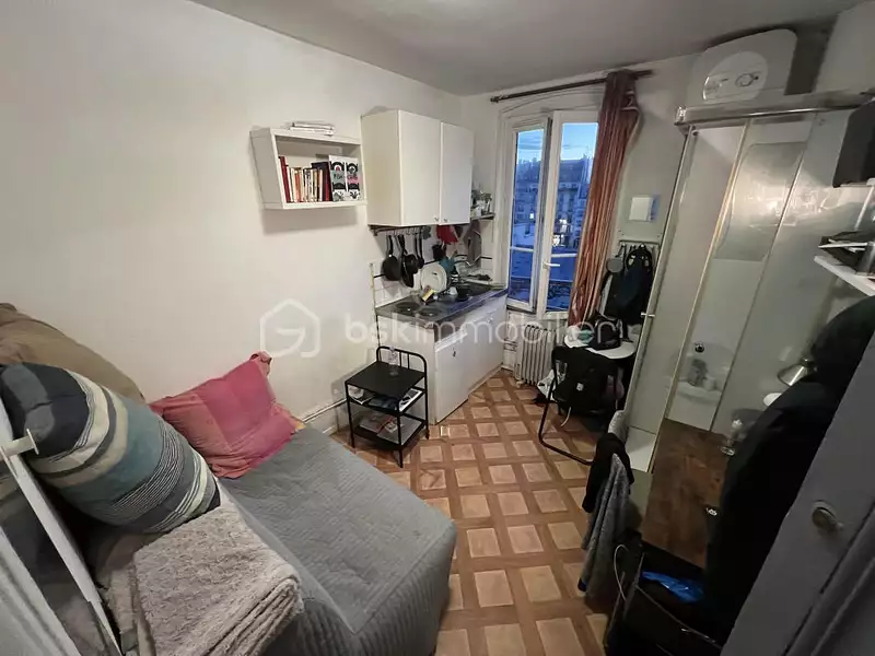 Vous disposerez d'un coin cuisine avec plaque électrique, une douche, un ballon d'eau chaude, un compteur linky et vous aurez également la place d'installer un bureau et un canapé. Grand wc sur le palier. Vue sur la tour Eiffel depuis la fenêtre de la chambre. Secteur très recherché : À proximité des différents commerces, métro 2,13,14, bus 66, square des Batignolles.