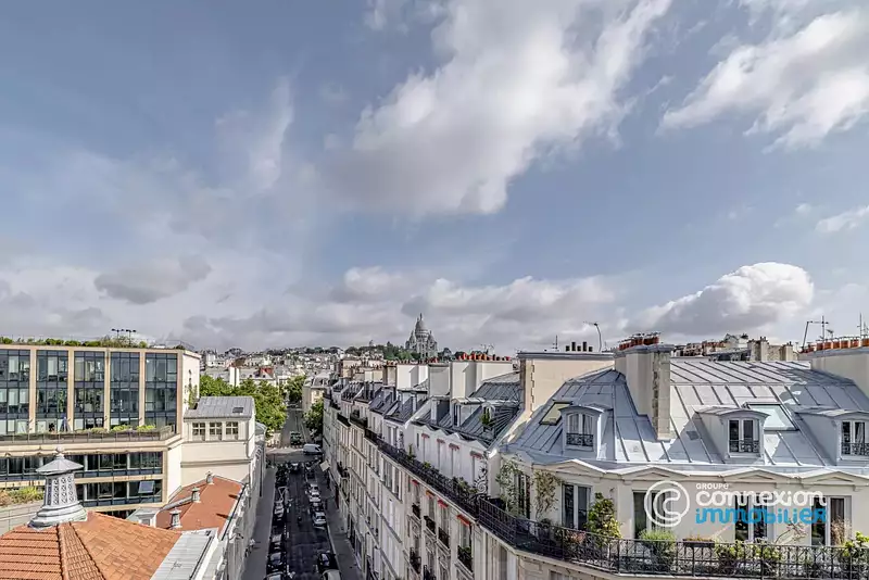 Une chambre de service totalement rénovée de 8,92m2 carrez (Volume habitable : 21.60 m3) avec un point d'eau et une vue imprenable sur le Sacré Coeur.